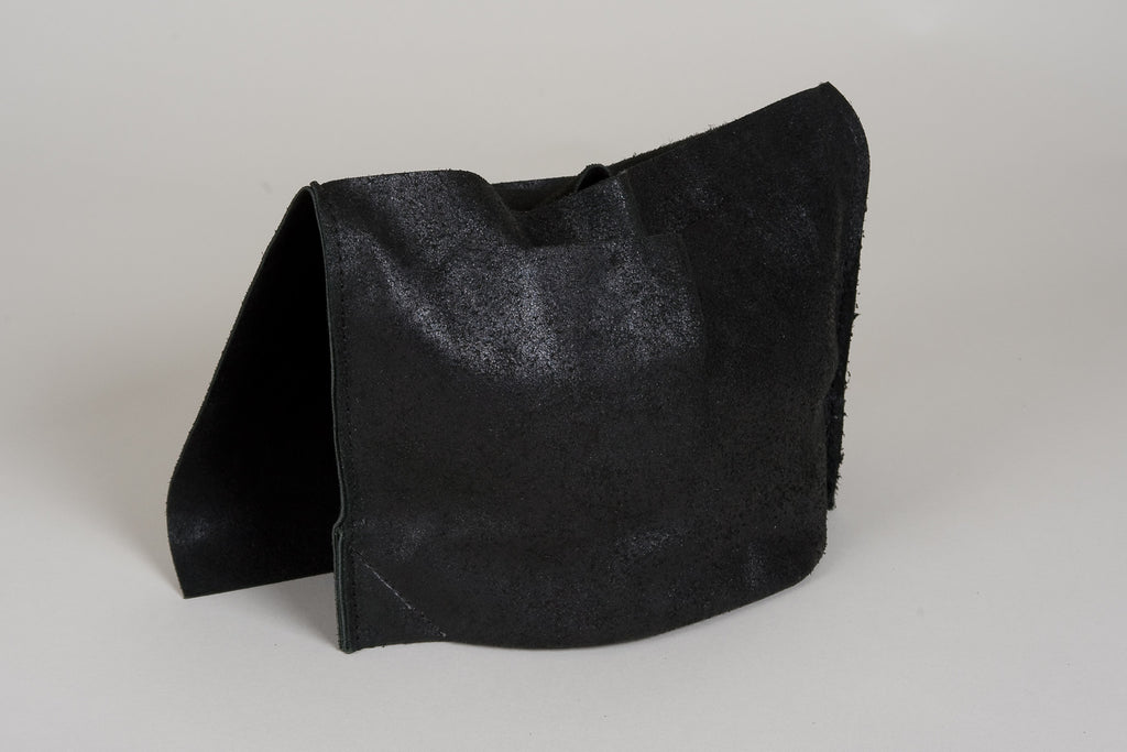 Slechts een ruwe uitsnede in het robuuste leer zorgt er voor dat je de tas kunt dragen. Het leer is grotendeels onbewerkt, waardoor de originele structuur goed zichtbaar blijft.