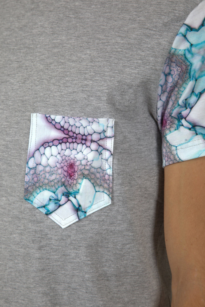T-shirt Licht Grijs incl. gekleurde mauwen + borstzakje