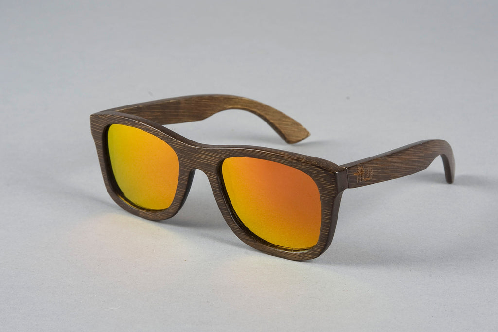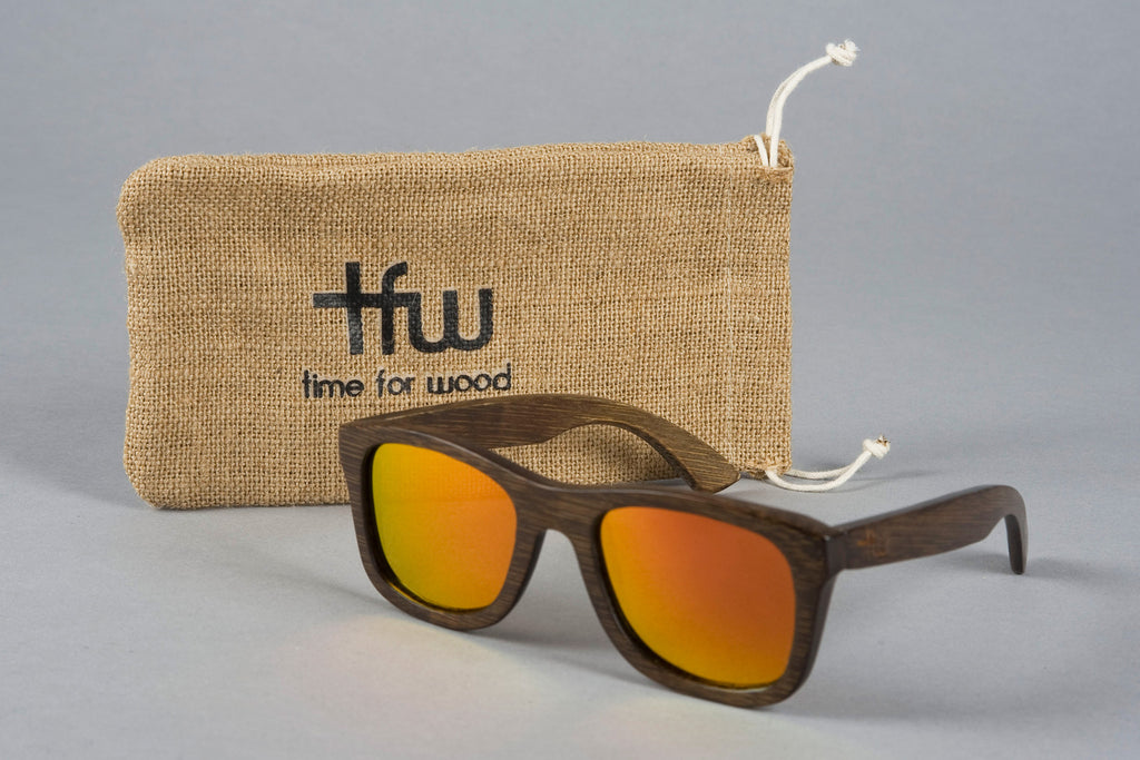 De houten zonnebrillen van Time for Wood zijn gemaakt van echt hout. Voor het Murielo model is bewerkt bamboe in een bruine kleur gebruikt. De brillen worden met de hand gemaakt met een zorgvuldige afwerking. De karakteristieke houtnerven maken elke bril uniek. Soepel meebuigende scharnieren zorgen voor de beste pasvorm. Met de Murielo bril zijn uw ogen goed beschermd tegen de zon, dankzij de gepolariseerde UV-400 glazen van REVO@, in rood-oranje variant. De bril wordt geleverd met een handige beschermhoes, gemaakt van stevig jute, en een zonnebril-doekje. Breedte frame 14,5 cm, hoogte frame: 5 cm, lengte poten: 14 cm.