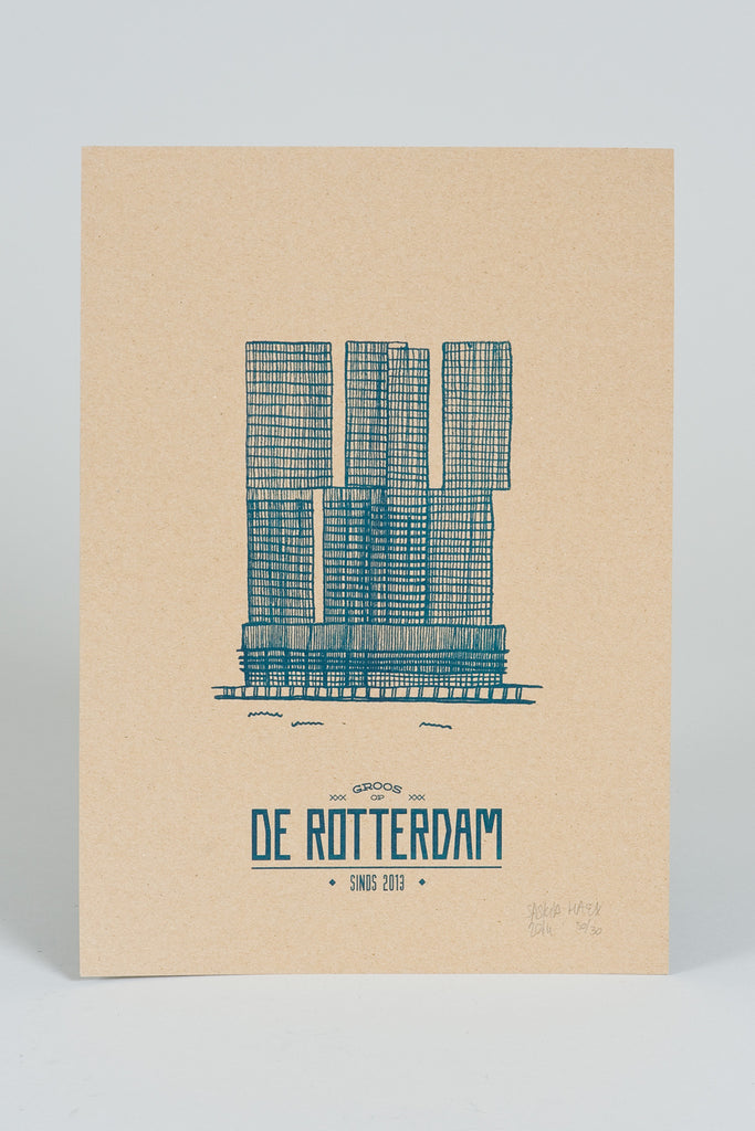 De Rotterdam - 25 x 35 cm. Opdruk: donkerblauw.